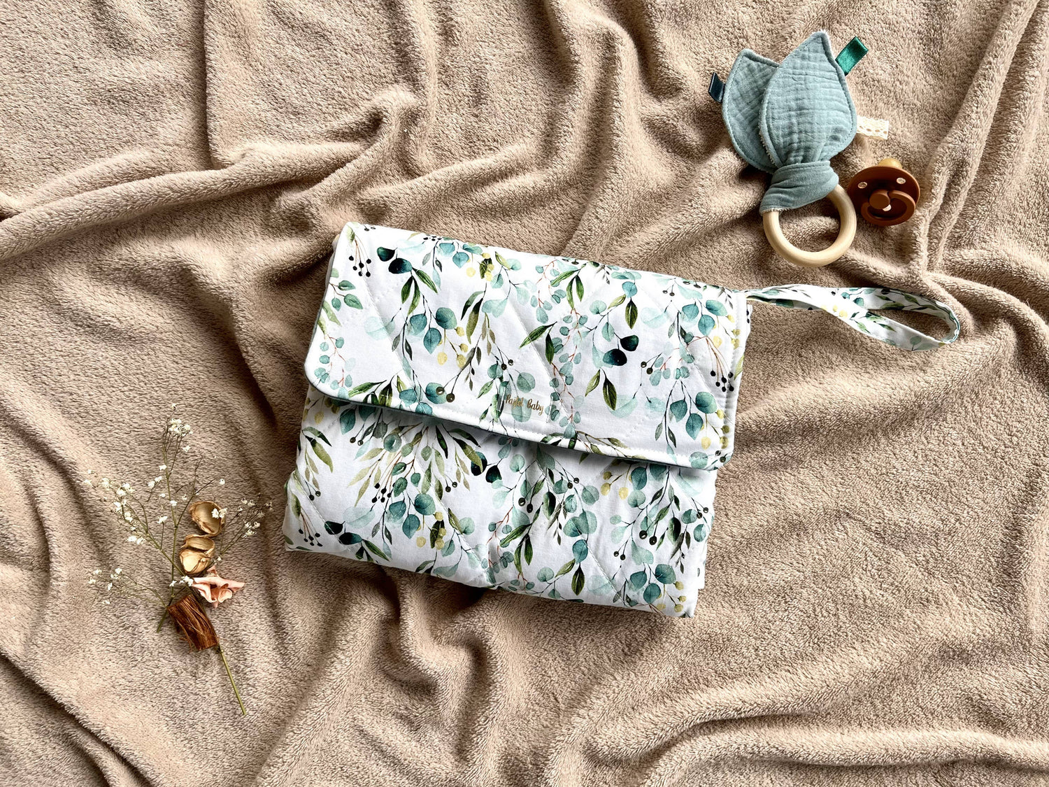 Immer alles zur Hand mit dieser Wickelunterlage für unterwegs. Durch die integrierte Tasche für Windeln & Feuchttücher ist mit einem Griff alles bereit. Zusammengefaltet passt die Unterlage in jede Tasche. Das perfekte Geschenk für aktive Eltern.
